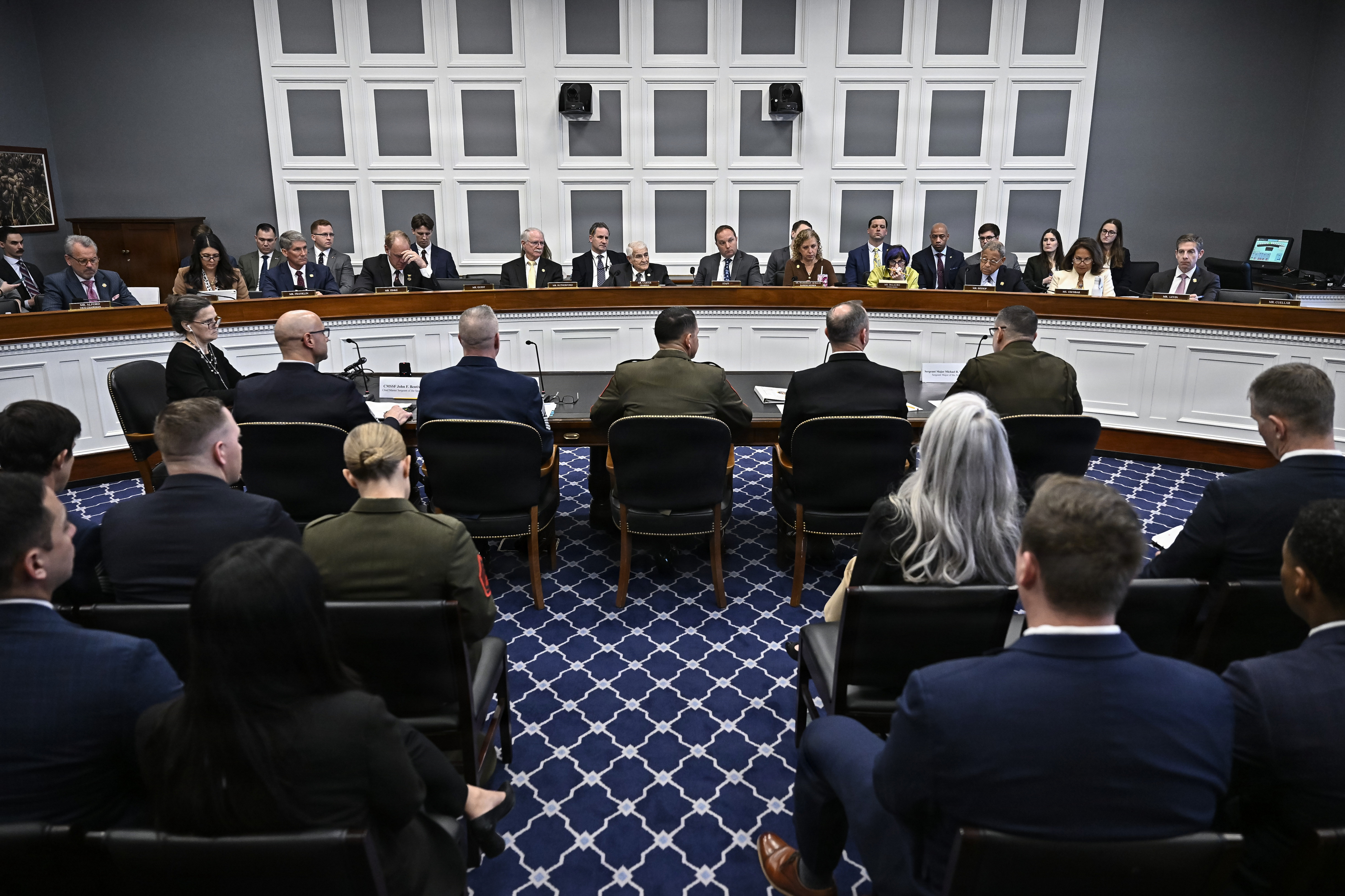 U.S. Air Force Brig. Gen. Richard Coffey, left, commander and assistant adjutant general, Florida Air National Guard, , and Command Sgt. Maj. Robert Sweat, command senior enlisted leader, Florida National Guard, coin the top performers of the field training exercise at Moody Air Force Base, Georgia, Feb. 6, 2026. Leadership presence during the FTX underscored the Air Force’s emphasis on realistic training and warfighting preparedness. (U.S. Air Force photo by Senior Airman Savannah Carpenter)