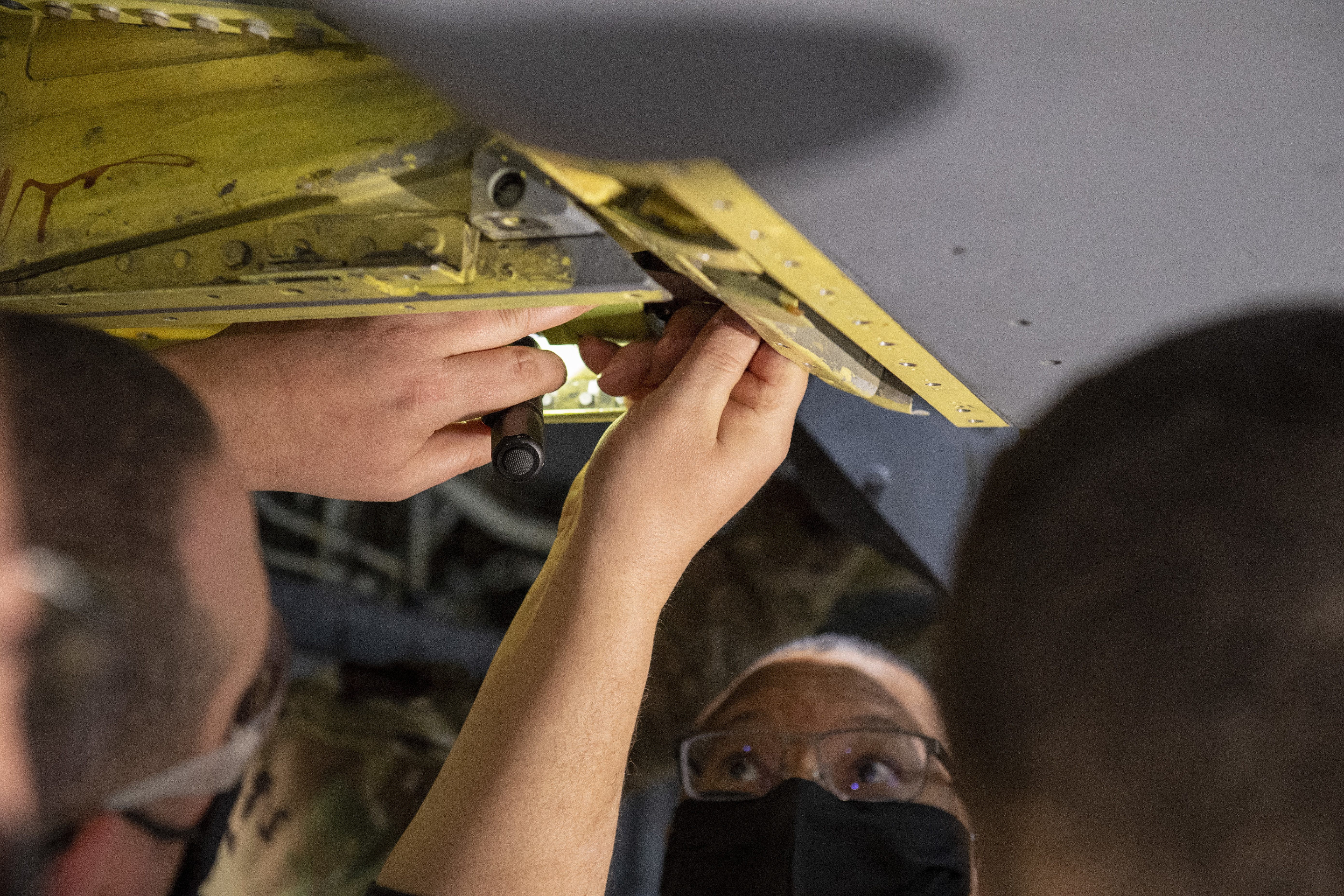 Airmen from the 101st and 134th Air Refueling Wing collaborated with Boeing Engineers on plans for alternative rigging procedures on the KC-135 Stratotanker on March 11, 2021 at the 101st ARW, Bangor, Maine.