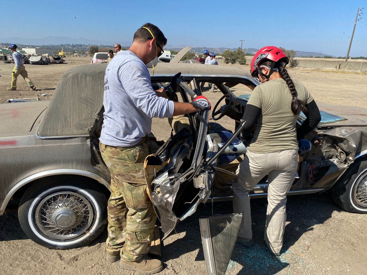 Memmbers of the 144th Medical Detahcment and 144th Civil Engineers Fire Department traveled to the Ventura Regional Training Center in Ventura , Calif. to sharpen their life-saving skill sets. The search and extraction exercise took place August 22 through 28 covering various breaching techniques to reppelling down buildings. (Air National Guard photo by Chief Master Sgt Chris Drudge)