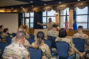 JOINT BASE LANGLEY-EUSTIS, Va. -- The Air National Guard’s 13th Command Chief Master Sgt. Maurice Williams, visited the Virginia Air National Guard’s 192nd Wing and its enlisted force Oct. 14, 2023, at Joint Base Langley-Eustis, Virginia.In his role, Williams is responsible for matters that affect